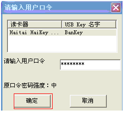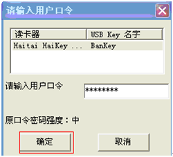 正確填寫您的登錄信息后提示輸入USBKEY登錄口令: