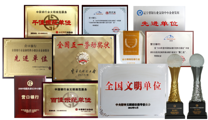 對中小微企業(yè)的持久專注,對經濟發(fā)展的有力支持,以及對社會事業(yè)的積極推動,營口銀行收獲了來自社會各界的高度認可,并相繼被中央文明委評為全國綜合性最高集體榮譽稱號——“全國文明單位”,被中華全國總工會授予企事業(yè)單位的最高榮譽——“全國五一勞動獎狀”;被中國銀監(jiān)會評為“全國銀行業(yè)金融機構小微企業(yè)金融服務先進單位”、“全國銀行業(yè)金融機構小企業(yè)貸款工作先進單位”“遼寧省銀行業(yè)小微企業(yè)金融服務先進單位”等一系列榮譽稱號;并收獲了“中國最具成長力中小銀行”、“ 中國最具特色中小銀行”、“中國城市金口碑服務銀行”等多項美譽。